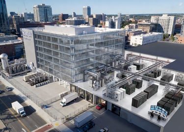 Total Footprint: Multi-story downtown facility with raised-floor white space, dedicated mechanical yards, and secure loading docks